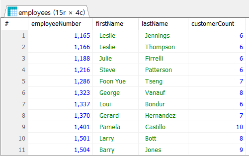 GROUP BY e.employeeNumber, e.firstName, e.lastName;