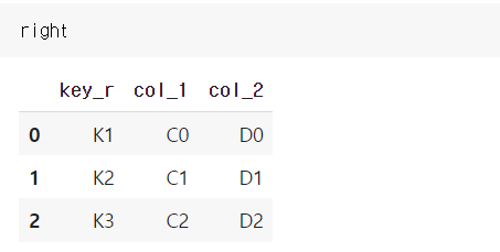 - RIGHT JOIN: Right 테이블의 key를 기준으로 결합, 일치하지 않는 경우 NaN으로 채움