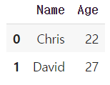 df2 = pd.DataFrame({'Name': ['Chris', 'David'], 'Age': [22, 27]})