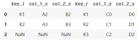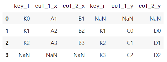 right 테이블에 값이 없는 K0, left 테이블에 값이 없는 K3 행이 NaN으로 표시된 것에 주목하자.
