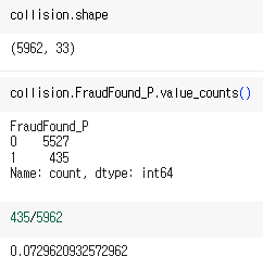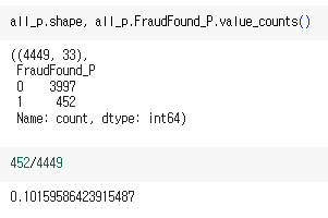 보험사기로 나온 케이스가 전체의 몇 %를 차지하는지(비율)